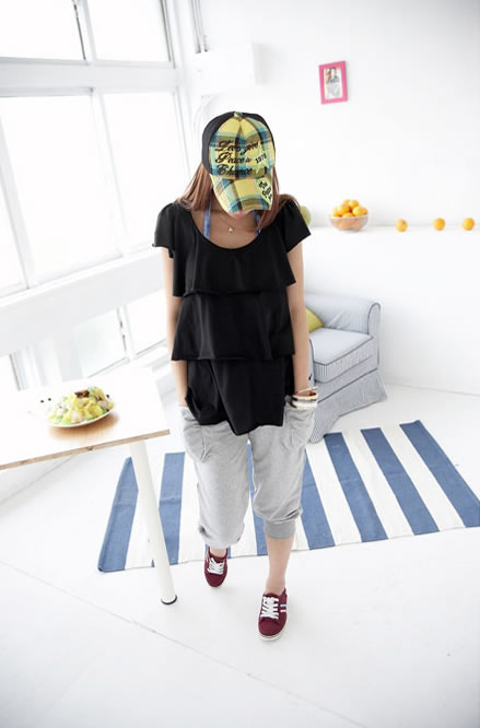 純真無暇˙韓版荷葉袖三層堆疊不修邊上衣