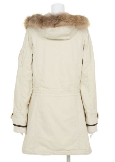 洗いをかけたようなコットンのシワ感がこなれた雰囲気のミリタリーコート!フードやウエストにあしらったドロストでシルエットで遊べる1枚。フードのラ クーンファーや裏地のボア、袖口のリブであたたかさも十分!メンズ風のワイルドなルックスがコーデを辛口に仕上げます。フードのファー&ライナーは取り外 し可能なので、シーズンに合わせて変化を付けて。