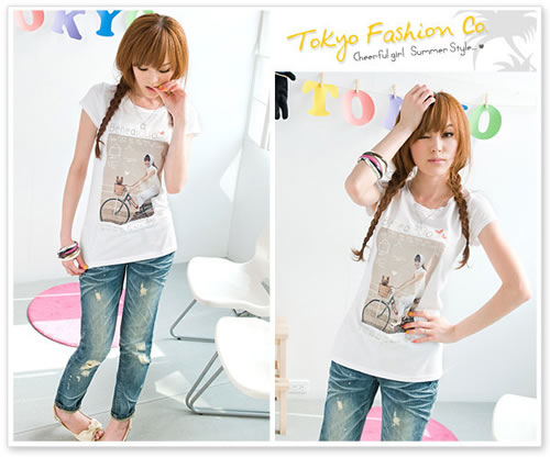 5. 法國少女騎單車短T☆41791☆推薦!!享受輕鬆樂活生活