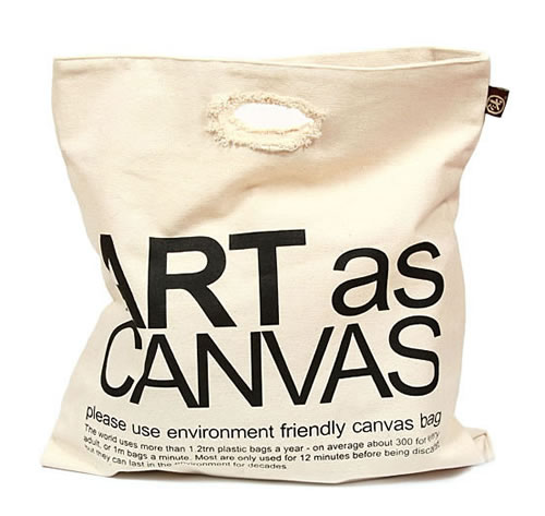 一個屬於完全自由創作設計的包包,以原色帆布剪裁,絕無加工成份,真真正正的環保袋!